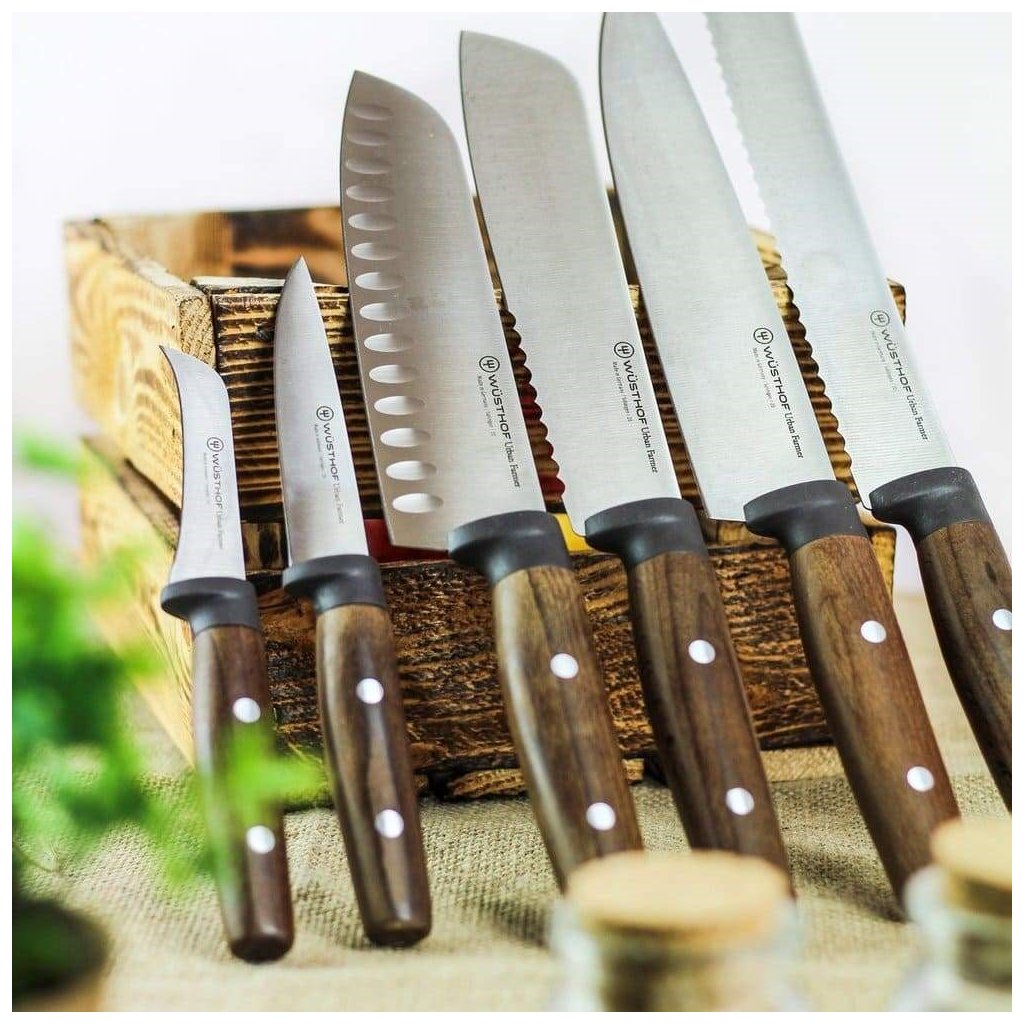 Niezwykle ostre ostrze jest niezbędne nie tylko do krojenia ulubionego steku, ale także do wszelkiego rodzaju dań mięsnych. Noże są częścią serii Urban Farmer, która łączy w sobie naturalne piękno rustykalnych narzędzi z zaawansowaną technologicznie precyzją noży wykonanych przy użyciu najnowszych materiałów i technik. Rękojeść wykonana jest z drewna bukowego z drzew uprawianych w sposób zrównoważony i jest poddawana obróbce cieplnej podczas produkcji, aby zagwarantować trwałość i wodoodporność. Rękojeść w połączeniu z antypoślizgową głowicą ostrza zapewnia pewny chwyt. W zestawie znajdują się 4 noże do steków.