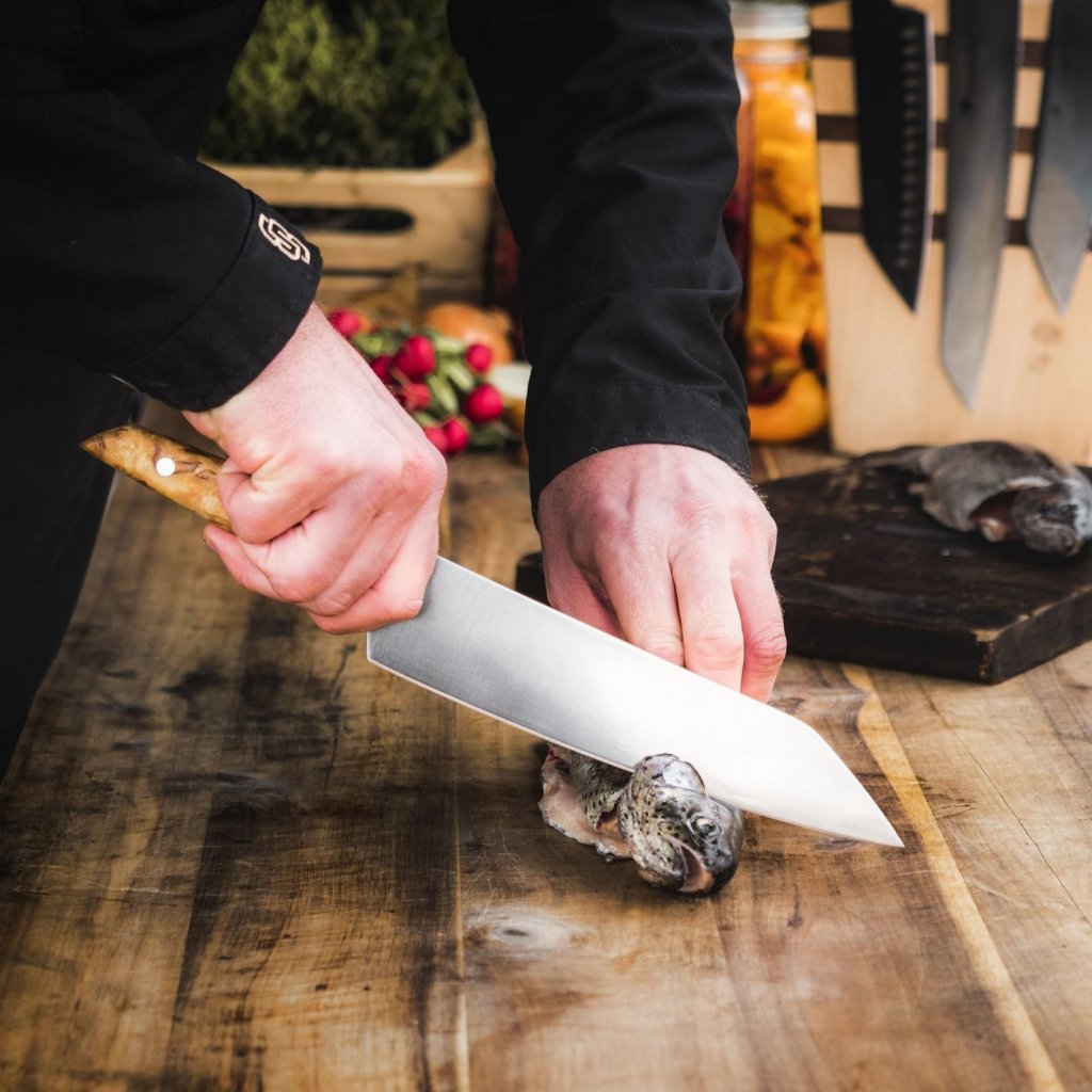 - 1x nóż szefa kuchni, długość ostrza 21 cm