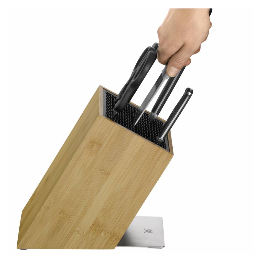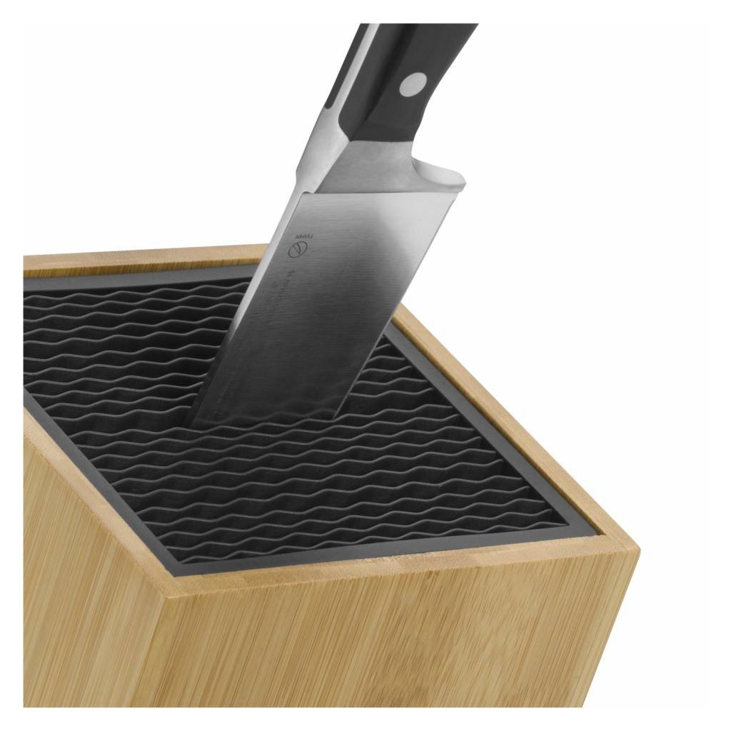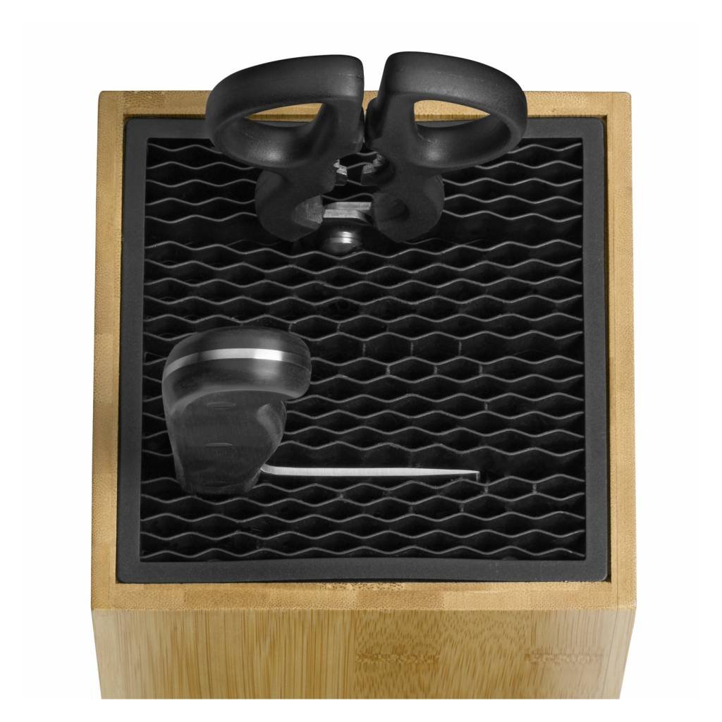 - blok na noże wykonany z delikatnego bambusa FLEXTEC może pomieścić do 15 noży różnych typów, w tym nożyczki