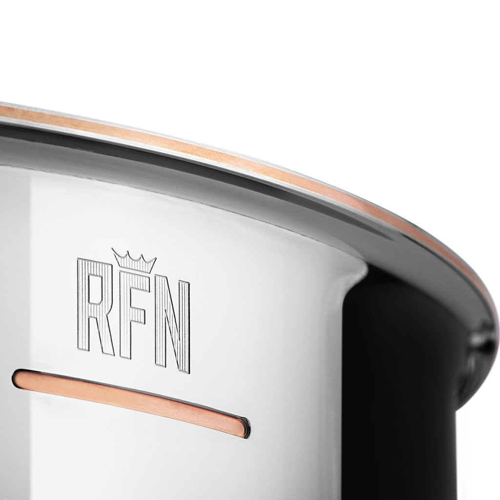 - wykonany z miedzi i pokryty wysokiej jakości stalą nierdzewną z lustrzanym połyskiem dla maksymalnej wytrzymałości, praktyczności i łatwej konserwacji