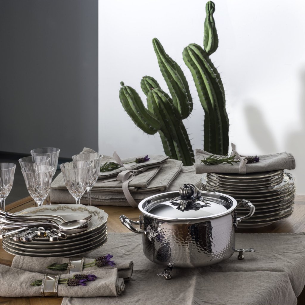- luksusowy, kuty zestaw garnków ze stali nierdzewnej dla najbardziej wymagających profesjonalnych i amatorskich kucharzy
