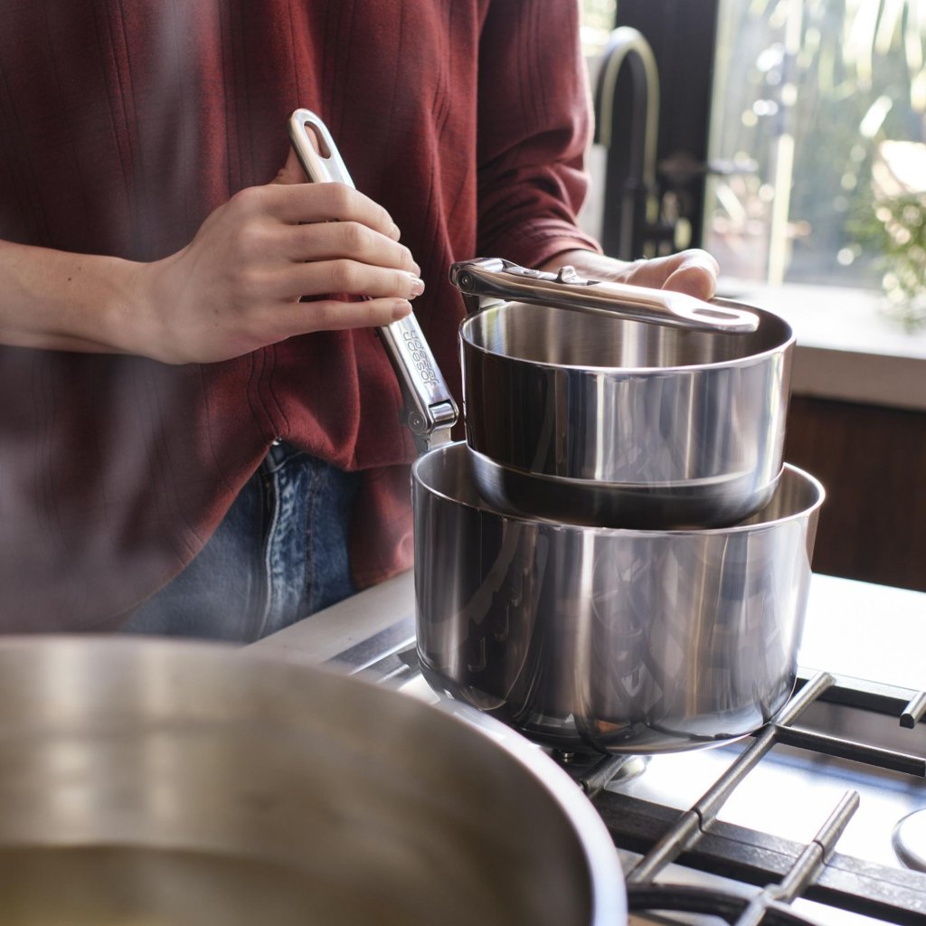 - Zestaw naczyń kuchennych klasy premium Joseph Joseph SPACE odmieni organizację kuchni dzięki zaawansowanemu systemowi układania w stosy i profesjonalnej, trójwarstwowej konstrukcji.