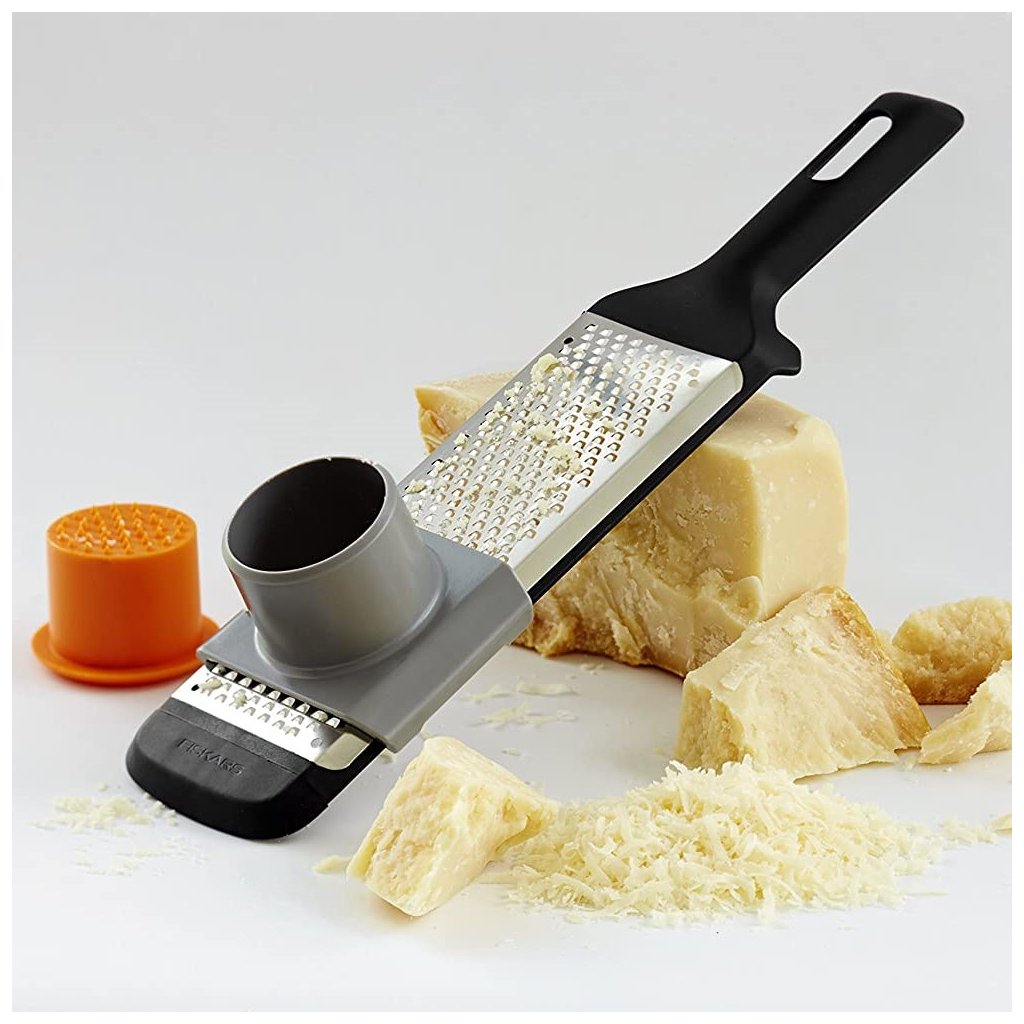 Zestaw Fiskars zawiera jedną grubą i jedną drobną tarkę. Mają świetną ochronę, dzięki której Twoje palce są bezpieczne. Można myć w zmywarce.
